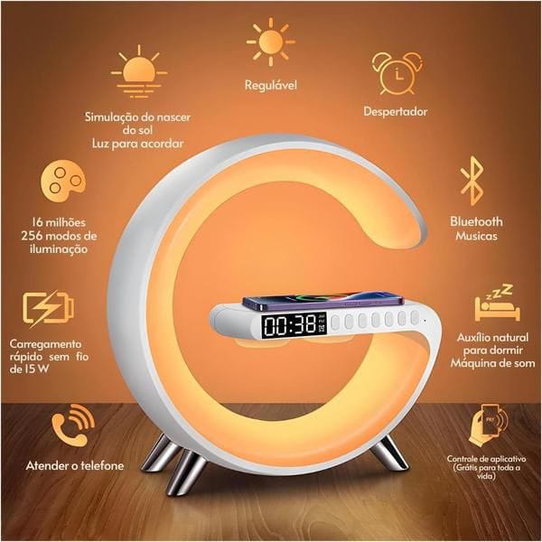 Elevate your space with our multifunctional G-Type Lamp! This big-size, wireless, rechargeable table lamp not only lights up your room with vibrant LED colors but also serves as a mobile phone charger and Bluetooth speaker. Packed in a stylish box, it's perfect for those who value both functionality and aesthetics.