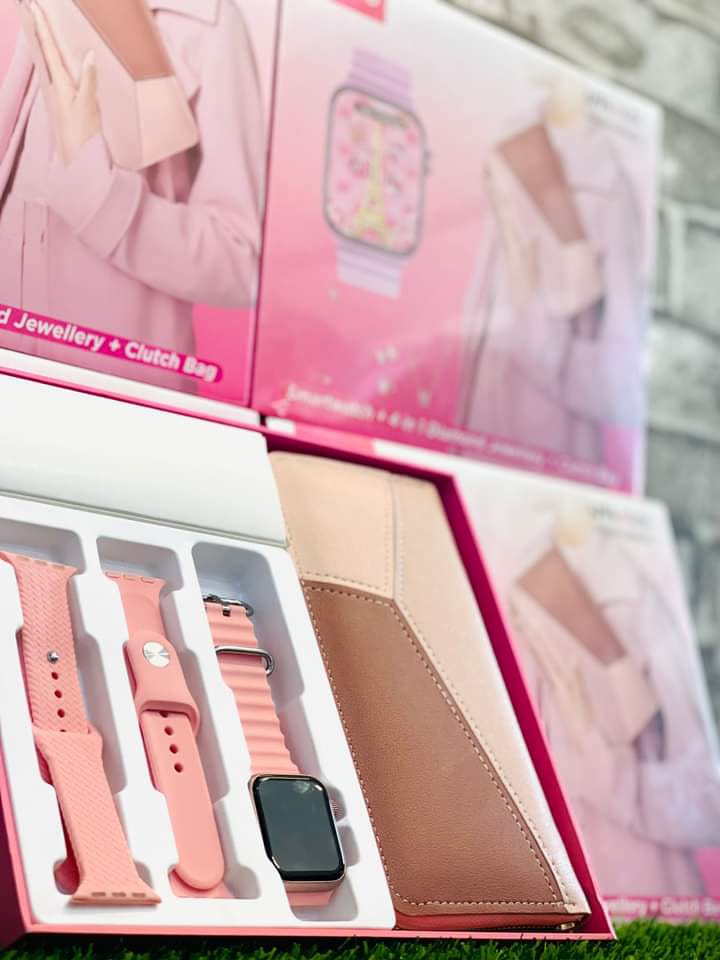 SMART WATCH + 4 IN 1 DIAMOND JEWELERY + CLUTCH BAG.